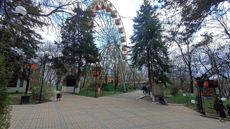 На верхней площадке, как и в советские годы, работает планетарий, где регулярно показывают познавательные фильмы о космосе, биологии, астрономии. Особая гордость парка — 40-метровое колесо обозрения, с которого видно весь город.
