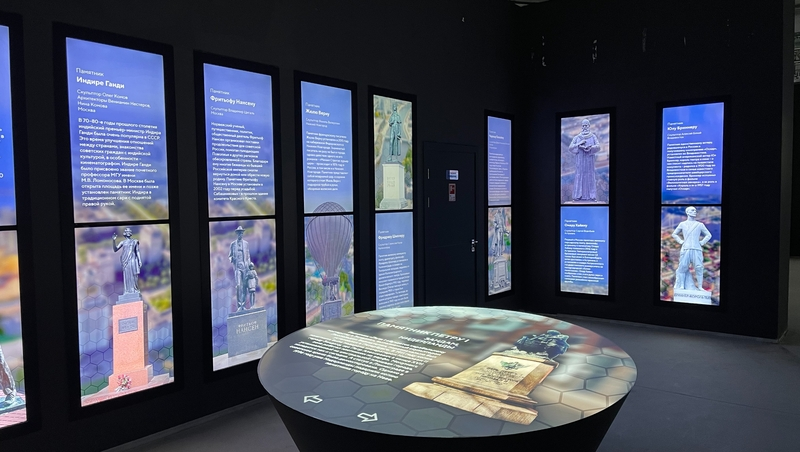 Для удобства зрителей на площадке работает экскурсовод — знакомит со всеми представленными мультимедийными экспонатами и показывает, как поучаствовать в мини-играх, викторинах и тестах.