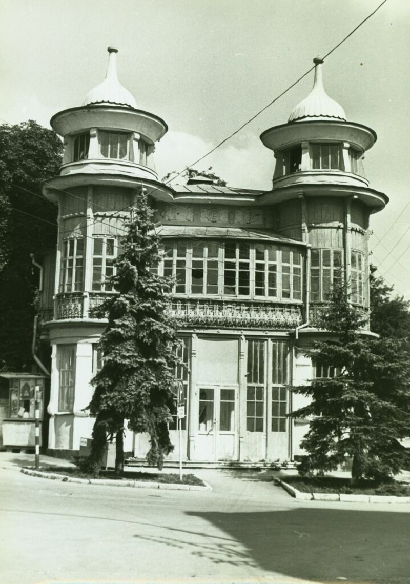 Здание в те годы было белым, а купола на башенках — голубыми, украшенными световыми барабанами. Боковые фасады украшала лепнина.
