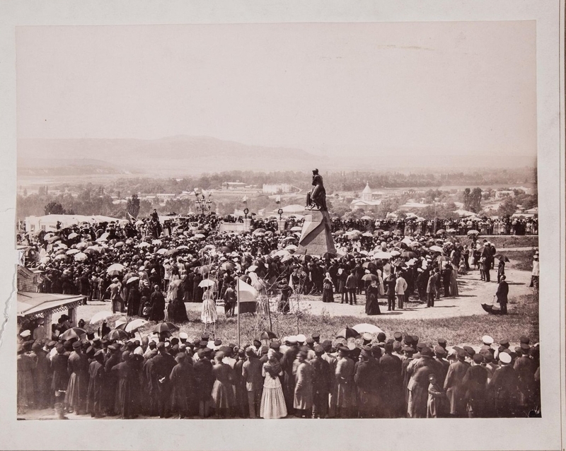 На торжестве присутствовал осетинский поэт Коста Хетагуров. Он возложил венок с надписью «От сынов Кавказа», произнес речь и продекламировал стихотворение. Делегация от Тенгинского пехотного полка возложила венок из серебряных листьев. Пятигорские фотографы А. К. Энгель и Г. И. Раев запечатлели это событие с колокольни Спасского собора. Тем же вечером их снимки уже можно было купить у памятника.