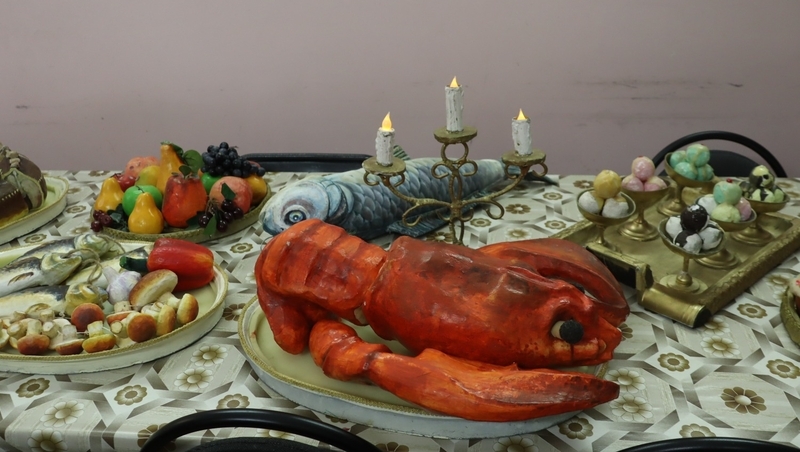 Особое впечатление на гостей произвёл стол с бутафорскими угощениями. Его используют в спектакле «Ханума», где по сюжету происходит хлебосольное кавказское застолье. Образовалась небольшая очередь из желающих сделать фото с омаром и осетром.