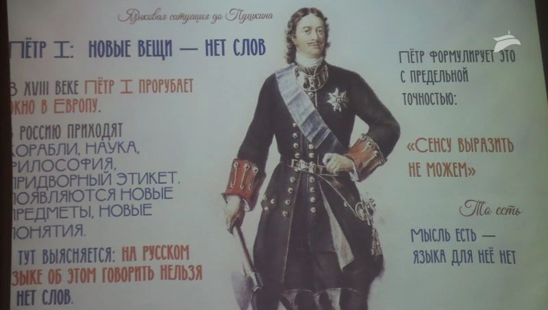 Вначале Валерия кратко рассказала о том, как формировался русский язык. Литературоведческий рассказ она подкрепила презентацией.