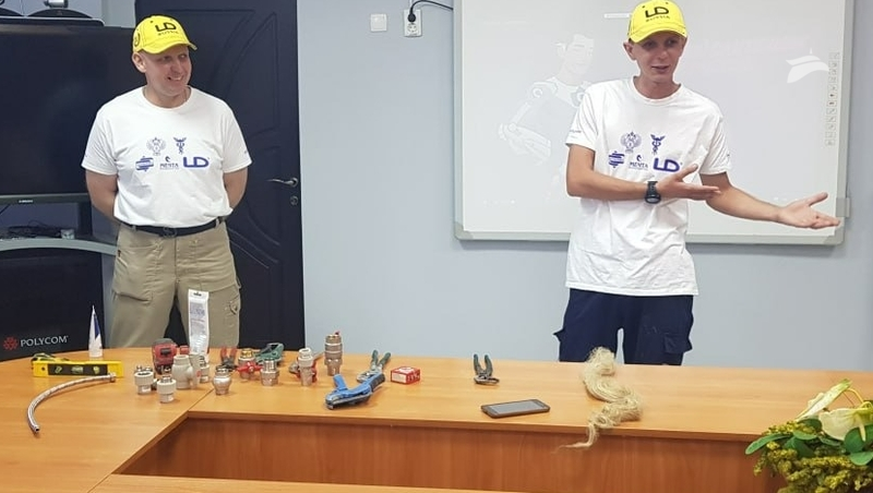 На первом задании пятигорские мастера Владимир Анпилов и Андрей Походня заменили водопроводные и канализационные трубы в доме пенсионерки. Сегодня они пришли в школу №12 — рассказали о профессии «слесарь-сантехник» и провели ученикам мастер-класс.