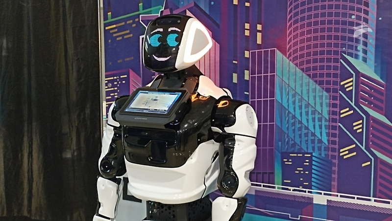 На входе вас встретит робот Валера. Ему нравится беседовать и отвечать на вопросы. А ещё он любит раздавать комплименты.