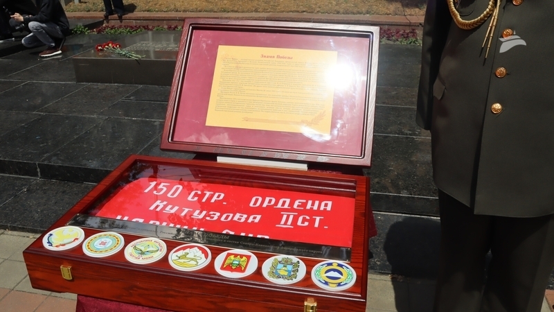 На этот раз акция прошла в присутствии представителей делегации Дагестана. Руководитель администрации главы и правительства республики Алексей Гасанов передал мэру Пятигорска Дмитрию Ворошилову копию Знамени Победы и поздравил горожан с грядущим праздником Великой Победы.