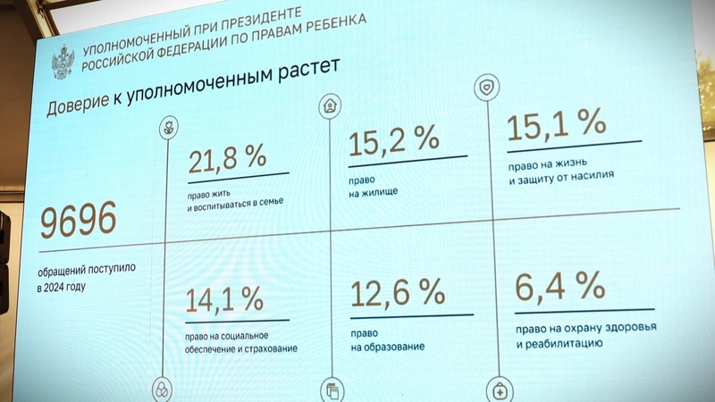 Мария Львова-Белова поделилась статистикой своей работы: за прошедшие месяцы 2024 года ей поступило почти 10 тысяч обращений. В основном, они касаются нехватки мест в школах и детских садах и буллинга. Отдельно она затронула тему приёмных семей, поделившись личным примером: омбудсмен воспитывает пять родных и пять приёмных детей. Она отметила, что последние нуждаются в большем внимании не только родителей, но и педагогов в период адаптации подростка в приёмной семье.