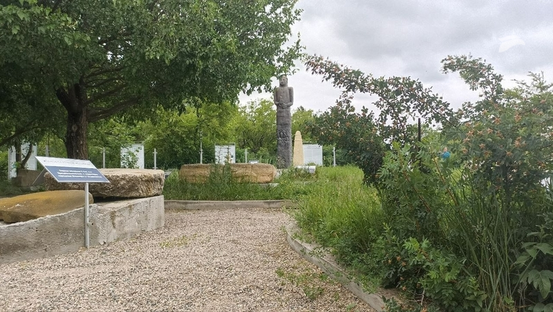 А над всем этим в центре экспозиции возвышается особенно таинственный трехметровый «страж вековой культуры», средоточие до конца неразгаданных рельефных смысловых сюжетных изображений и носитель нерасшифрованной однозначно надписи — Дука-Бек. Этот памятник привлекал внимание исследователей с самого открытия. Учёными и публицистами обсуждались и обсуждаются вопросы хронологии, этнокультурной принадлежности, духовно-религиозного содержания и другие характеристики монумента. Несмотря на то, что статую Дука-Бека изучают уже 240 лет, остаётся ещё немало вопросов, требующих уточнения.
