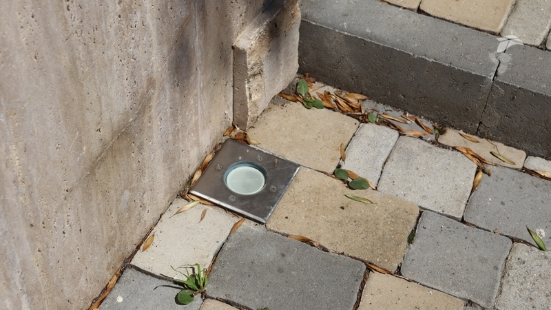 По периметру в плитку вмонтированы лампы для подсветки дорожек и скульптур снизу.