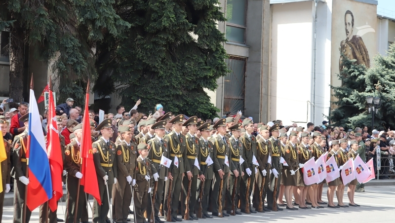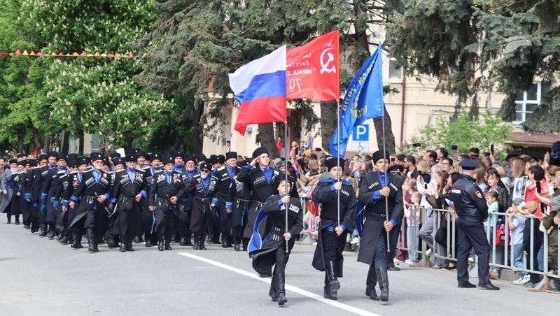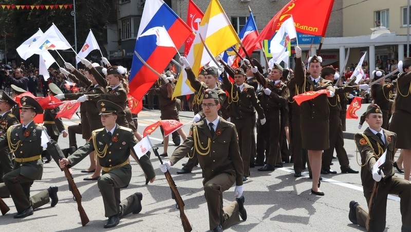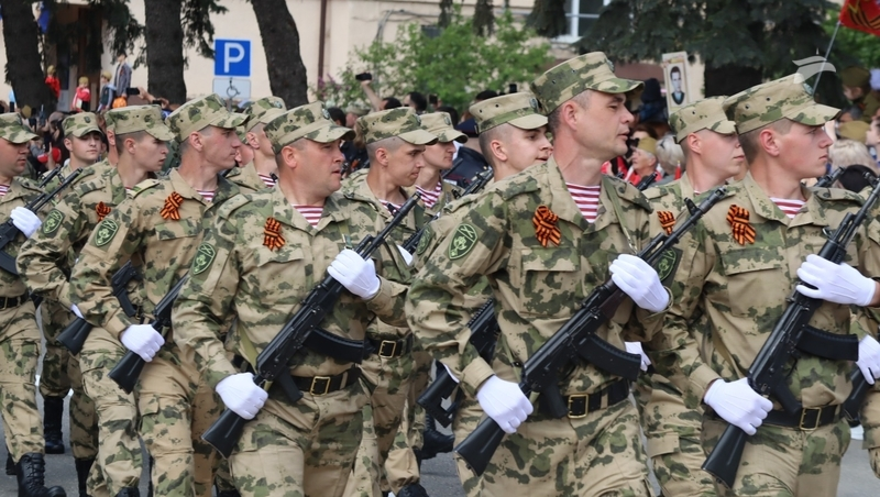 Шеренгами двигался личный состав «Управления Северо-Кавказского округа войск национальной гвардии Российской Федерации», горячеводская община Терского казачества, воспитанники ДОСААФ и юнармейцы.