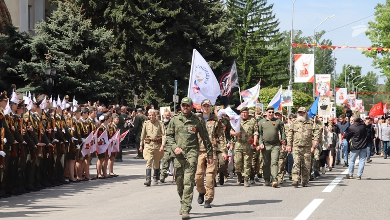 За ними проследовали горожане с портретами родственников-фронтовиков — «Бессмертный полк». Многие участники акции памяти не скрывали слёз, вспоминая предков, добывших победу сквозь ужасы войны, ранения и потери.