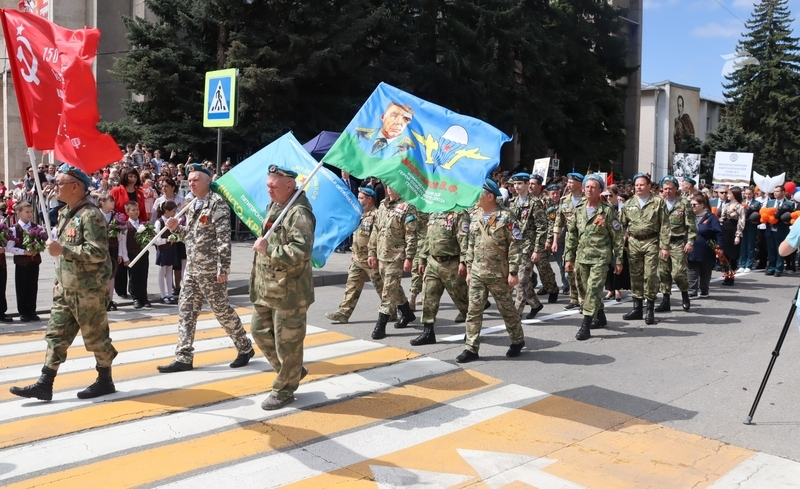Торжественное шествие открыли пятигорчане-бойцы спецоперации, ветераны Великой Отечественной войны, участники боевых действий, дети войны и узники концлагерей.