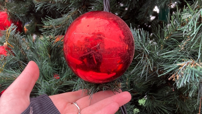 Зелёную красавицу уже нарядили — на ней красуются красно-желтые игрушки. Финальный этап декора — белые хлопья снега — украсят дерево чуть позже.