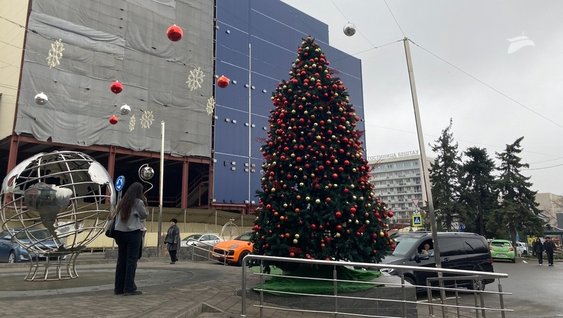 О скорых новогодних праздниках пятигорчанам напоминают и ёлки. Одна из них красуется у входа в ТЦ на улице Орджоникидзе.