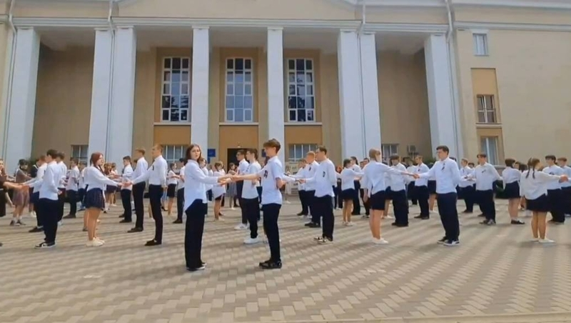 В мероприятии приняли участие учащиеся образовательных учреждений. Они станцевали вальс под песню «Синий платочек», которую исполнил коллектив городского ДК.