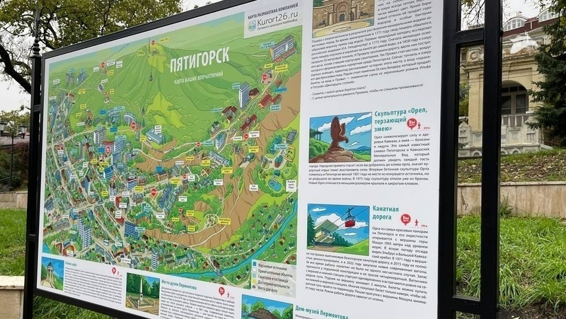 В Нагорном парке Пятигорска такой объект стал третьим. Ещё две карты расположились у Академической галереи, у района бювета № 1 рядом с санаторием «Тарханы».