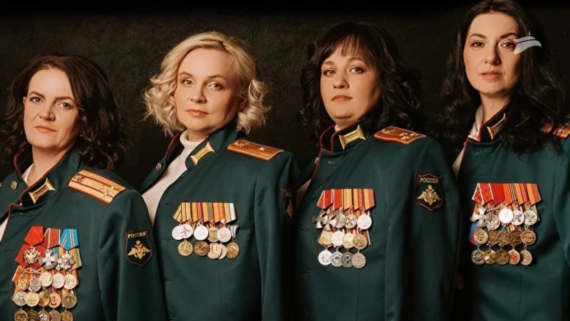 Проект «Жёны и мамы героев» включает в себя фотоподборку с женщинами, чьи мужья, сыновья или отцы принимают участие в спецоперации. На снимках женщины изображены в одиночку или со своими семьями и одеты в военные кители.