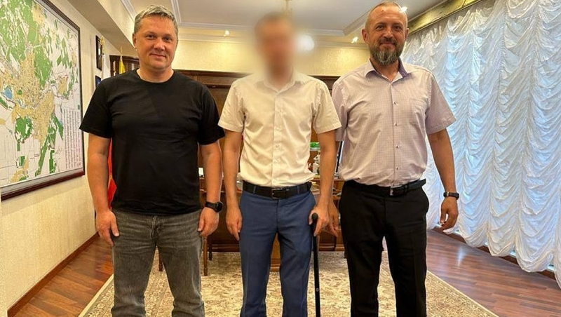 Мэр Пятигорска встретился с участником СВО, который получил тяжёлое ранение в ногу и два месяца находился в госпитале, где ставился вопрос об ампутации ноги. Благодаря военным медикам ногу смогли спасти.