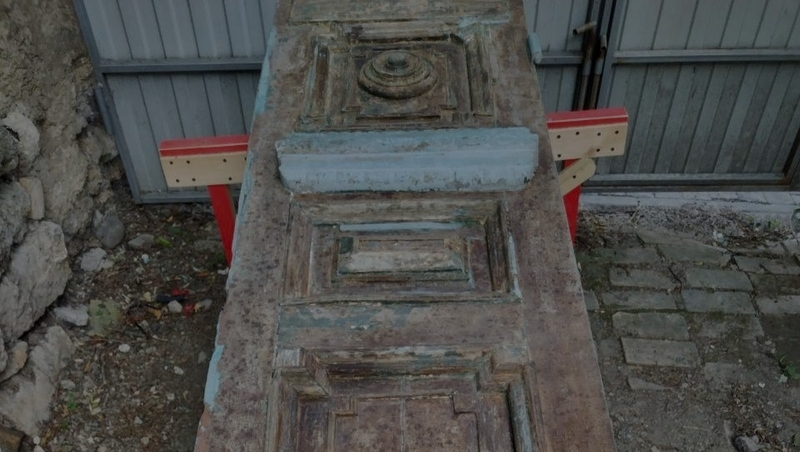 Активисты сняли дверь, чтобы восстановить её. Отметили, что она была закрыта на два замка, а ключей не оказалось. Затем начали очищать от краски, а на месте установили информационный баннер. Также они продолжили чистить фасад от побелки.