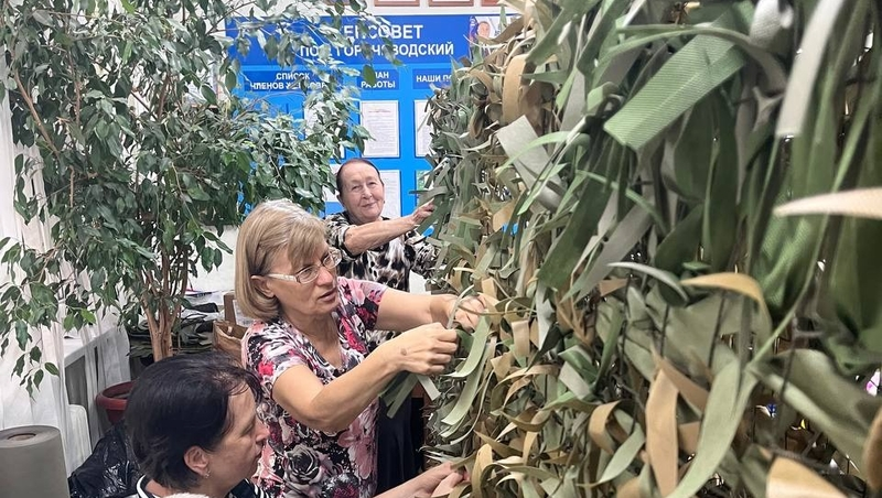 Для бойцов специальной военной операции всегда остаются востребованными маскировочные сети для укрытия личного состава и военной техники. Помощь в этом оказывает гражданское население — так, женсовет посёлка Горячеводский не только производит маскировочные изделия, но и изготавливают заживляющие мази, проводят мастер-классы для всех желающих помочь военнослужащим в зоне СВО.