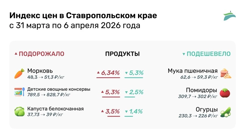 Морковь и детские овощные консервы выросли в цене до 51,3 руб. и 828,7 руб. за кг соответственно. Однако в регионе снизилась средняя стоимость пшеничной муки, помидоров и огурцов. Подробнее — в инфографике «Портала Пятигорска».