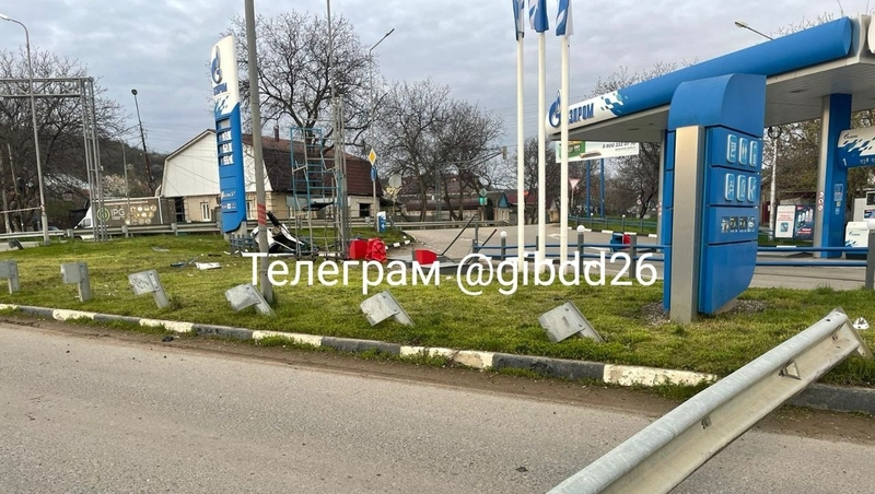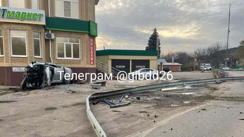 В пятницу, 7 апреля, в 4:40 на улице Георгиевской водитель BMW превысил скорость и не справился с управлением. После этого легковой автомобиль съехал с дороги через отбойный брус, проехал через заправку, перевернулся и врезался в стену торгового помещения.
