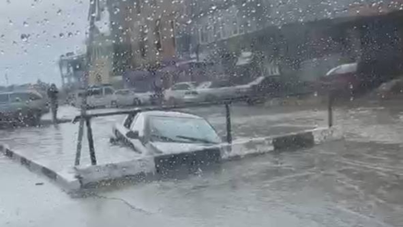 Территория автовокзала в Пятигорске не стала исключением. На одном из участков дороги предположительно оказалась большая яма, которую затопило вместе с припаркованным автомобилем. Рядом стоящий транспорт не пострадал.