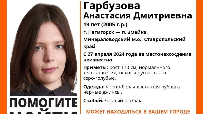 Поиски ведутся в Пятигорске и Минераловодском округе. Информацию о возможном местонахождении девушки можно сообщить по телефону 8 (800) 700-54-52 или 112.