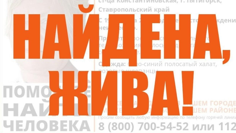 Ранее стало известно, что пропавшую женщину нашли сотрудники уголовного розыска в Пятигорске.
